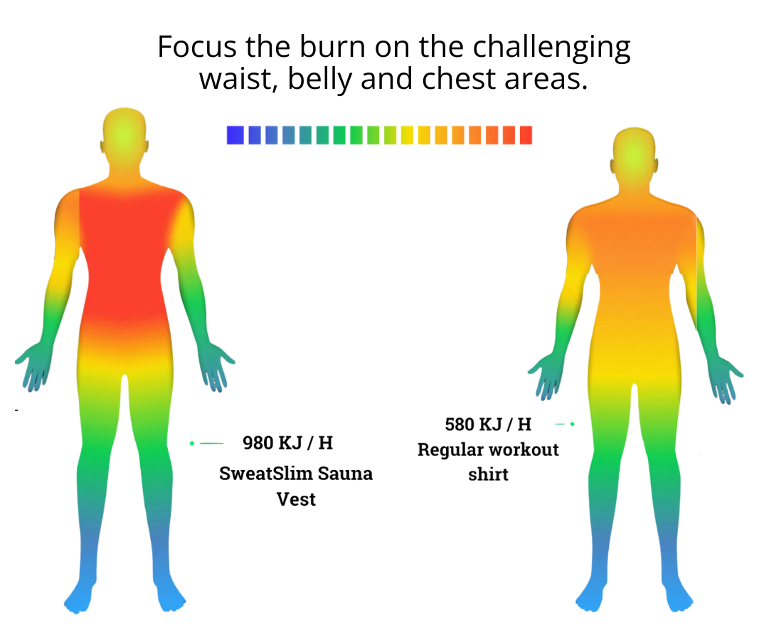 Our Sweat Vest uses thermogenic technology to raise your body temperature during workouts, making you sweat more. This extra heat forces your body to work harder to cool down, which burns more calories and speeds up fat loss.